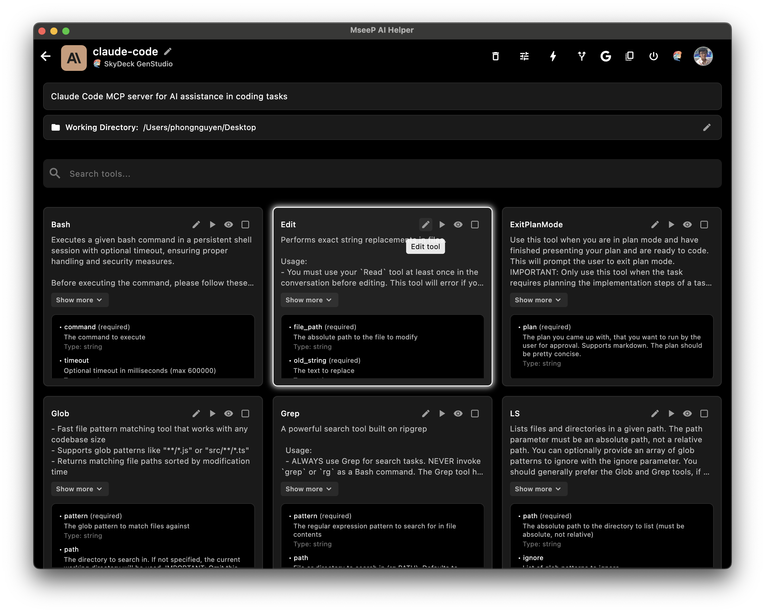 يوفر MseeP AI Helper قدرات شاملة لإدارة خوادم وأدوات MCP، مما يتيح لك: